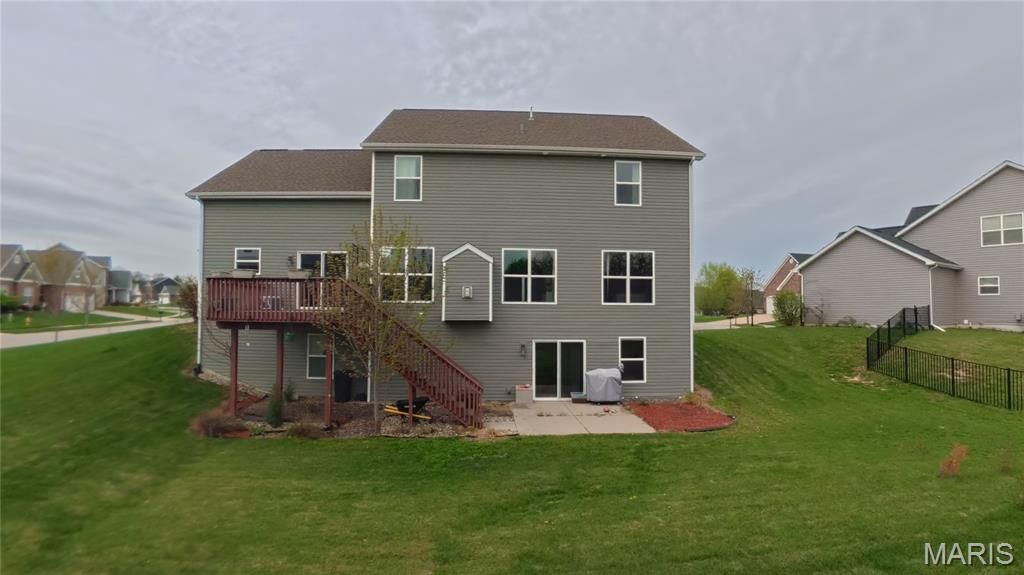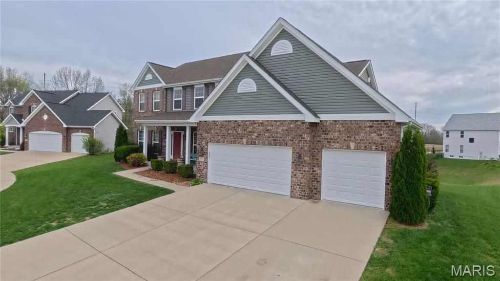 Welcome to O'Fallon! This spacious 6-bedroom, 4.5-bath home is perfectly situated on a corner lot leading into a quiet cul-de-sac, offering both privacy and curb appeal. Built in 2018, this home is loaded with space, functionality, and modern features throughout.Step inside to find a large dining room and a comfortable family room anchored by a cozy gas fireplace. The expanded kitchen is ideal for both everyday living and entertaining, featuring a center island, stainless steel appliances, walk-in pantry, and a bright eat-in area. A separate laundry room adds convenience, and the attached 3-car garage provides plenty of storage and parking.The main floor primary suite is a true retreat, complete with a HUGE walk-in closet, dual vanities, and an oversized walk-in shower.Upstairs, you'll find four additional bedrooms, including a Jack-and-Jill bathroom connecting two rooms, plus an additional full bathroom serving the other bedrooms-perfect for larger households or guests.The walk-out lower level expands your living space even further with a large family room, snack bar with mini fridge and stone countertops, a sixth bedroom, and a full bathroom. There's still a TON of storage space remaining in the basement!With dual HVAC systems and water heaters, this home is designed for comfort and efficiency year-round. Don't miss your opportunity to own this incredible home in one of O'Fallon's most desirable areas!All information is deemed reliable but not guaranteed. All information herein should be independently verified by the buyer and/or buyer's agent.