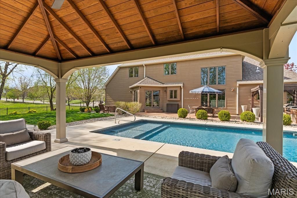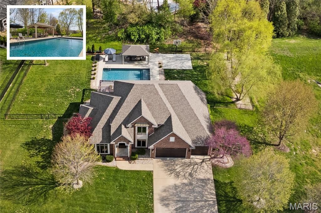 New Photography to be loaded Friday, April 10th. Ultimate Resort-Style Living in O'Fallon's Braeswood Trails! This stunning 1.5-story custom-built home has been meticulously transformed with high-end updates throughout, starting with a freshly painted interior, newer designer lighting, and plush newer carpeting. The expansive main level welcomes you with a bright two-story living room with soaring ceilings and formal dining area leading into a fully refreshed eat-in kitchen. This chef-inspired space boasts crisp white cabinetry, a new custom tile backsplash, a recently added beverage center all opening to the breakfast and hearth room for secondary family space. The laundry room was just recently updated with incredible new custom cabinetry/ locker system.A recently updated main-Level Primary Retreat Like No Other. The luxury primary suite offers ultimate privacy with its own dedicated sitting room/office and a fully renovated ensuite bath featuring upgraded tile floors, a corner vessel tub, dual sinks, and a large custom tile shower with glass doors. The second level continues the excellence with three very well sized spacious guest bedrooms and a second fully renovated guest hall bathroom. Even more living space awaits in the finished lower level, which showcases a large open floorplan featuring family/rec room, a new entertainment bar with bar seating, wine storage display, a dedicated exercise room, a private home office/ bonus room and full ensuite bath, and great unfinished storage.Step outside to a large, fenced retreat designed for entertaining and relaxation. The centerpiece is a beautiful inground saltwater pool, complemented by a custom pool cabana featuring a tongue-and-groove ceiling and integrated power. Enjoy evenings by the brick gas firepit or stay active on your private basketball court or by the built-in outdoor grill / bar. With a newer roof installed in 2020 and incredible attention to detail on all three levels, this home offers the perfect combination of modern luxury and outdoor enjoyment. A must see in OFallon Schools (Moye K-5, Carriel 6-8 & OTHS 9-12). The garage has hardwired EV charging.